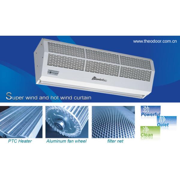Hot air curtain with Arc PTC heater new concept design; Metal fan wheel running smooth and Safety operation;